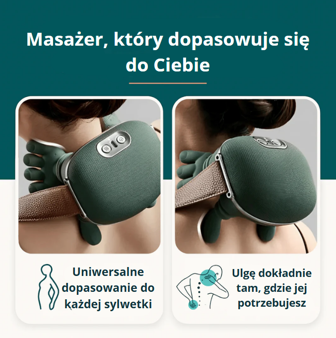 Masażer został zaprojektowany głównie do szyi i ramion, ale jest również bardzo skuteczny w stosowaniu na plecach, nogach, ramionach i pośladkach.