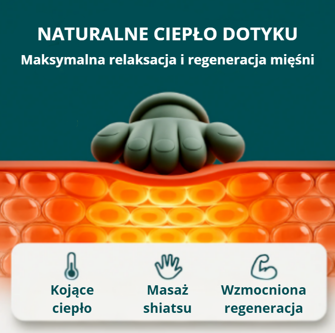 Symuluje prawdziwy nacisk kciuków i dłoni, jak w naturalnym masażu shiatsu. Dzięki temu: